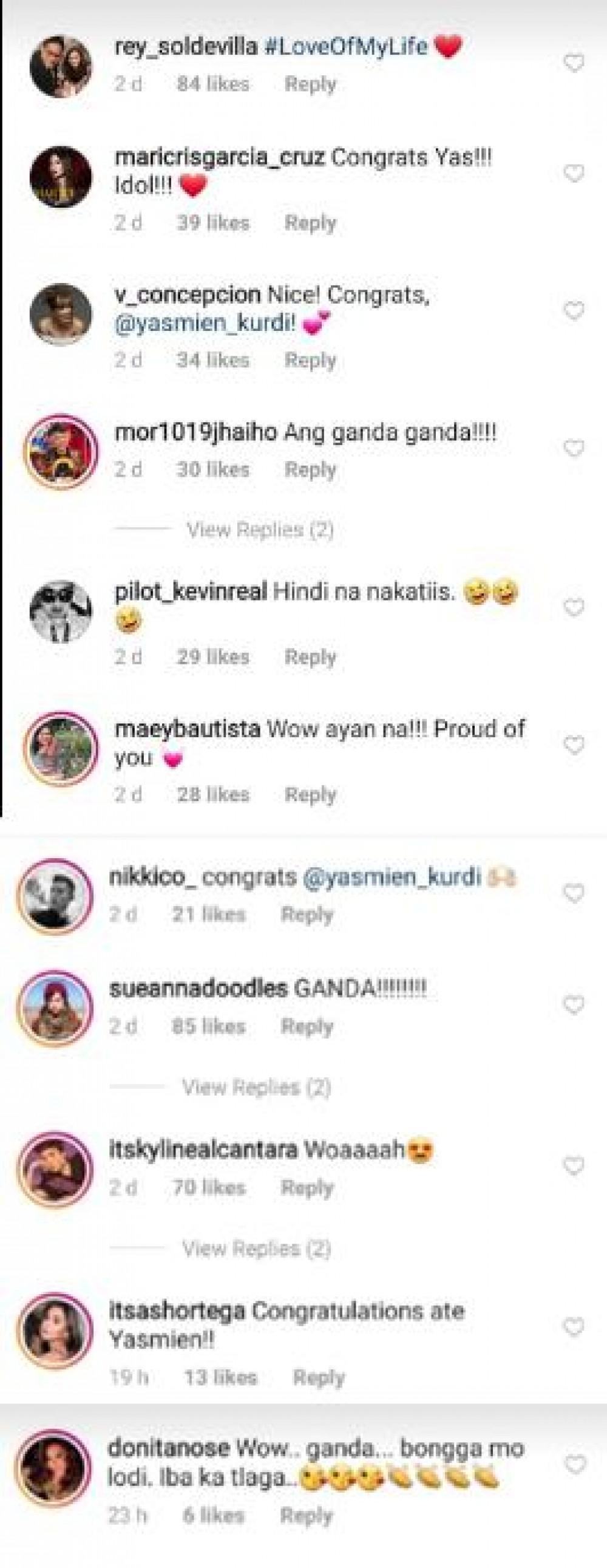 Kapuso leading man Benjamin Alves took to Instagram to congratulate Yasmien for her achievement