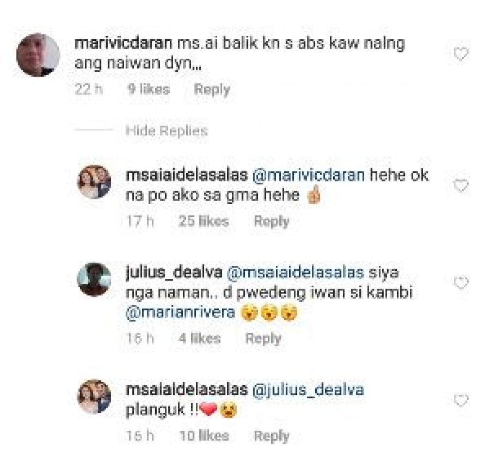 Aiai also mentioned that she doesn't want to leave her good friend Marian Rivera.