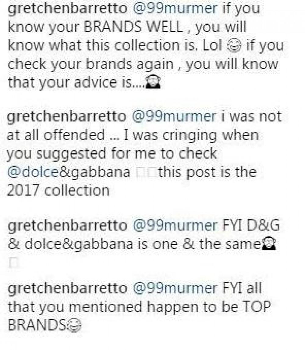 Gretchen immediately fired back and chided the netizen for having little knowledge about the luxury brands she featured in the video.
