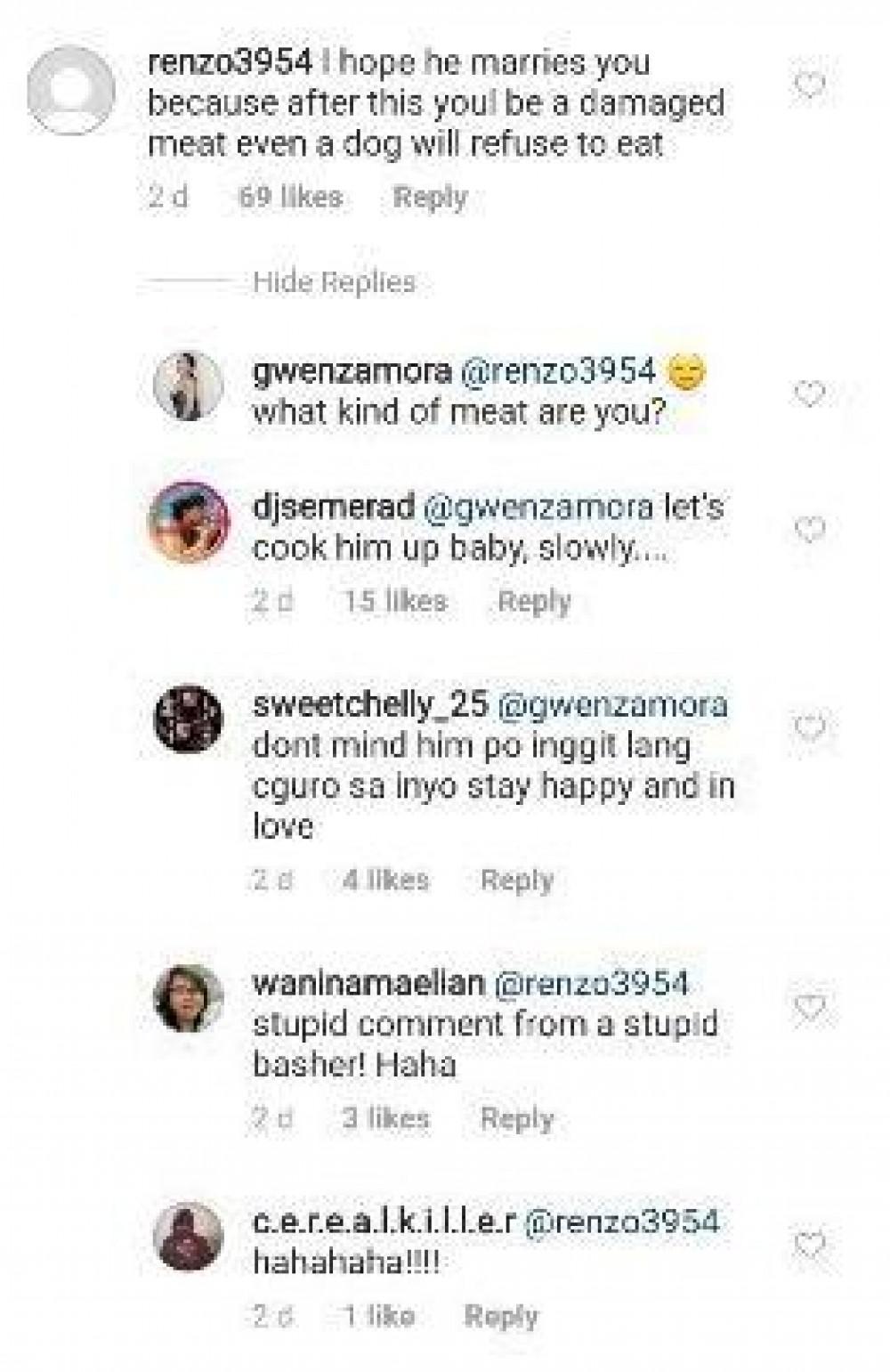 Saad ng netizen na si @renzo3954 “I hope he marries you because after this you'll be a damaged meat even a dog will refuse to eat.”