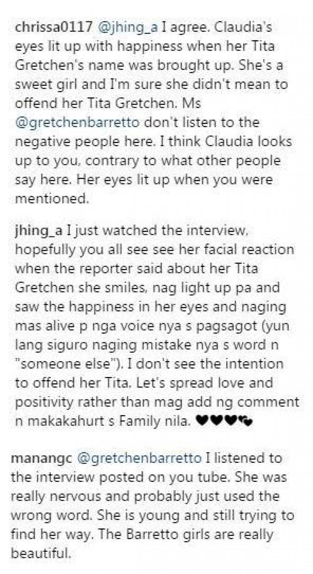 May mga netizens din na ipinagtanggol si Claudia at sinabi na walang masamang intensyon ang dalaga at huwag haluan ng malisya ang kaniyang statement.