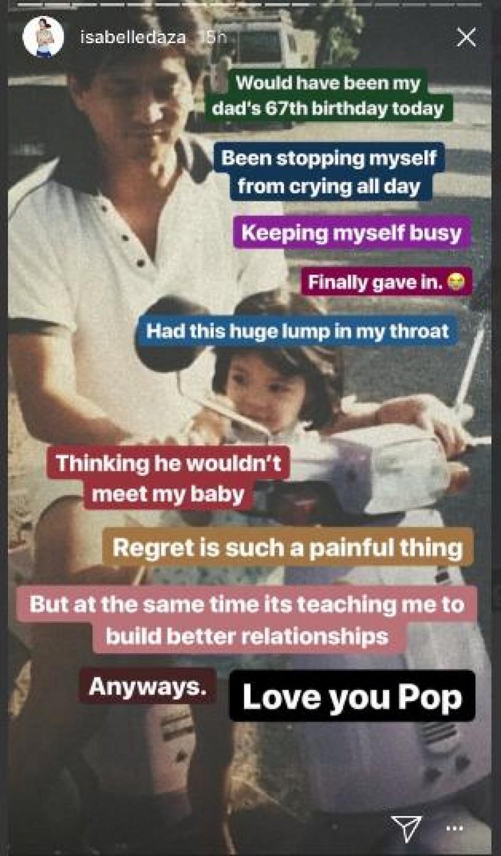 Isabelle Daza gets emotional remembering her dad's birthday. Check out her posts on her IG stories