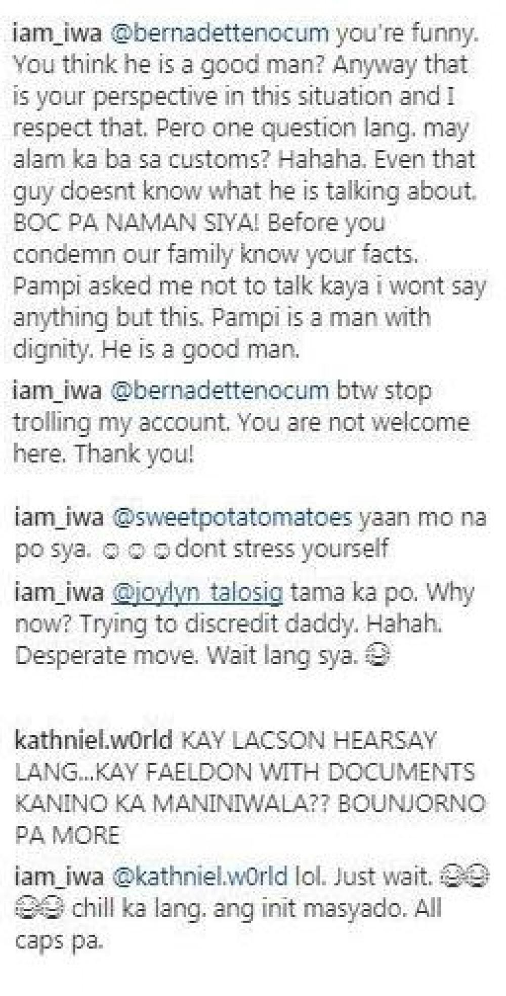 The former StarStruck contestant also answered some comments of netizens who were saying hurtful things towards her family. Check out Iwa’s reply against her bashers.