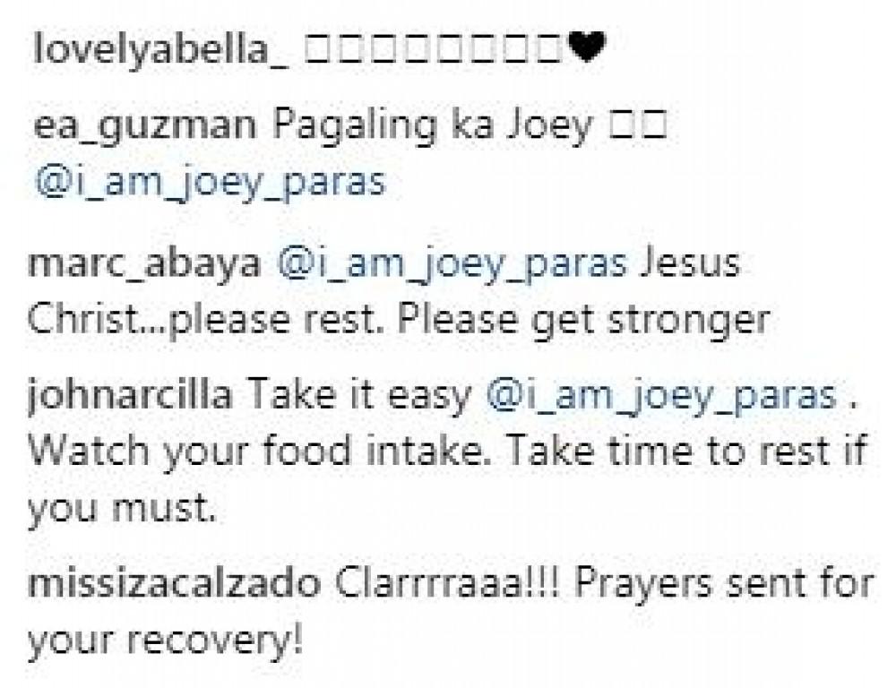 Nagpadala ng well wishes ang mga kaibigan niya sa industriya tulad nina Lovely Abella, Edgar Allan Guzman, Marc Abaya, John Arcilla at Iza Calzado.