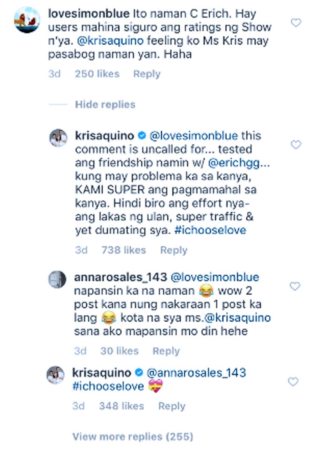 READ: Kris Aquino reacts to "user" comment of basher against Erich Gonzales