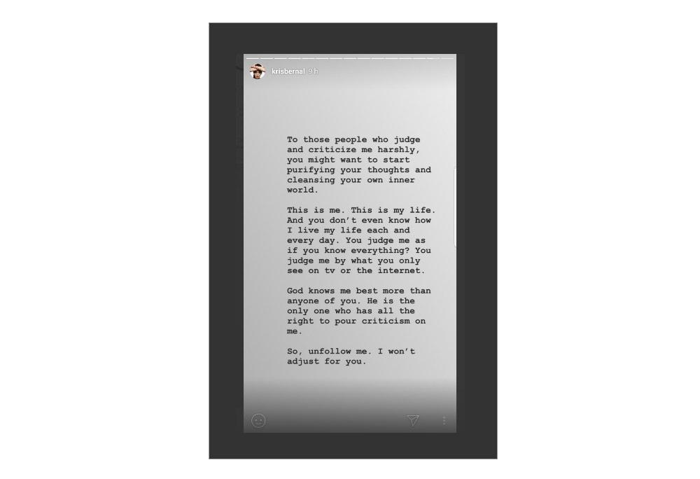 On her Instagram Story, Kris defended herself from the nasty comments being thrown at her by her bashers.