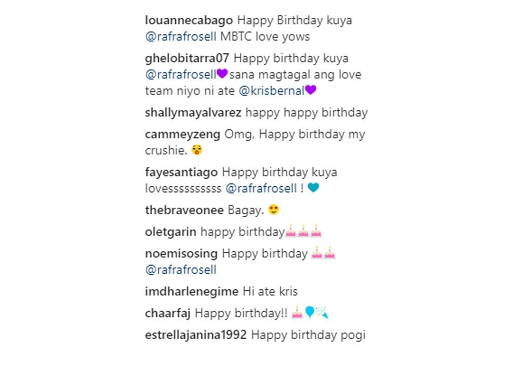 "Happiest birthday pogi, @rafrafrosell! I feel lucky to work with an actor who knows the balance between great professionalism and fun! Enjoy your day, you deserve it! I would take the privilege to tell you that you are a perfect screen partner and a friend," the Impostora star wrote.