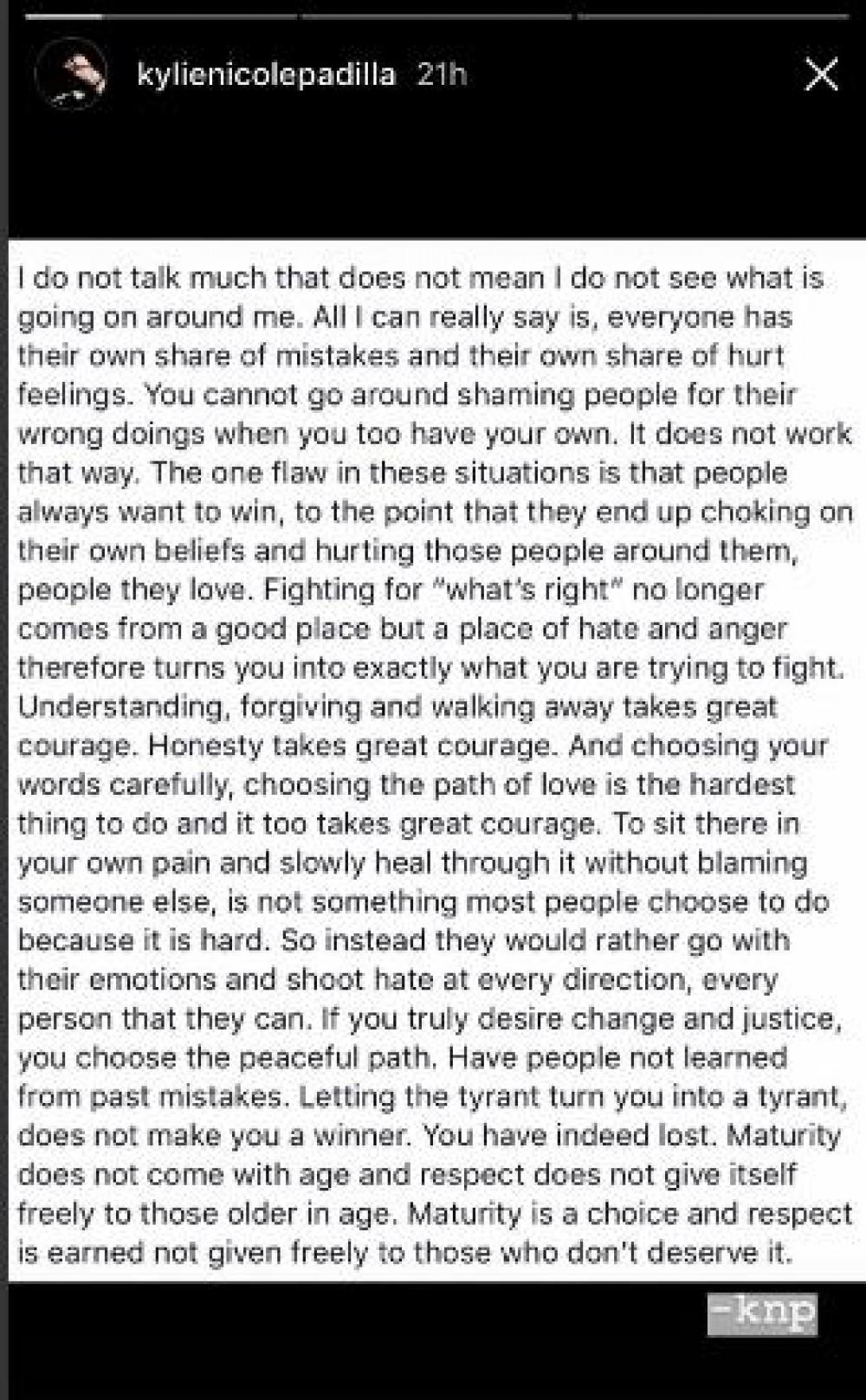 Former Encantadia star Kylie Padilla’s cryptic Instagram story post has sparked several speculations as to whom she is addressing it to.