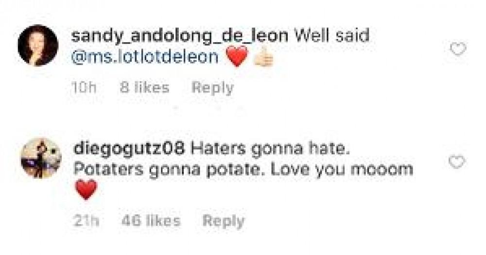 Meanwhile, Lotlot's son Diego Gutierrez and veteran actress Sandy Andolong expressed their support to her via Instagram as well.