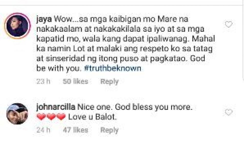 Meanwhile, Queen of Soul Jaya and John Arcilla showed their support and defended Lotlot from the negative post directed against her.