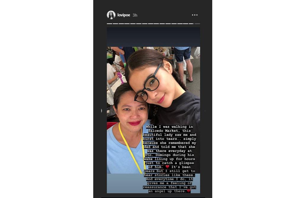 Kapuso primetime actress Lovi Poe shared on her Instagram Story her memorable encounter with a woman who is a fan of her father, the late “Da King” Fernando Poe Jr.