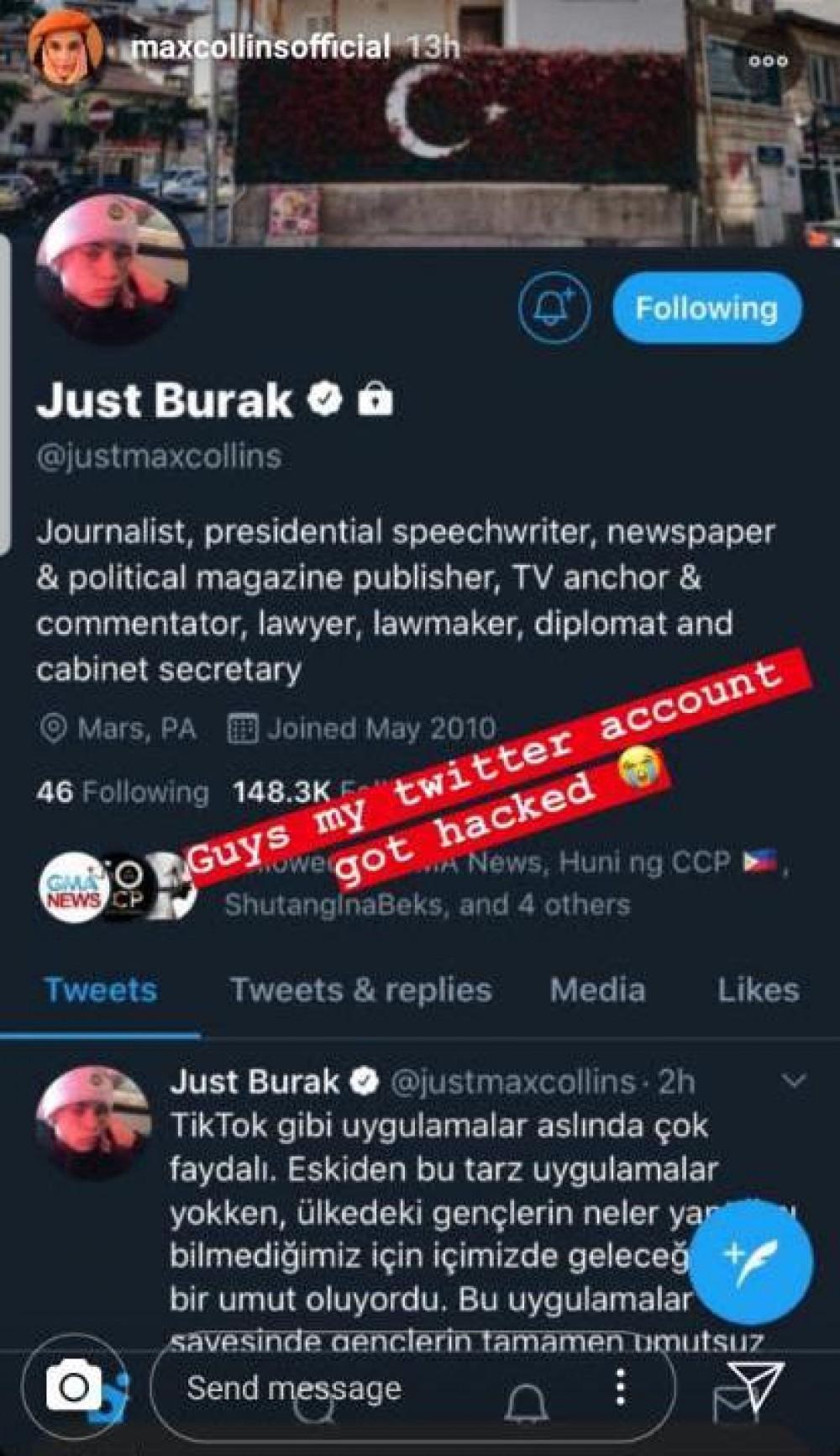 Max made the announcement via her Instagram Story that she currently has no control over her Twitter with the handle @justmaxcollins.