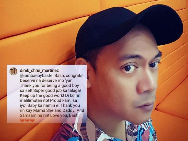 “Kapag may artistang bata sa sa set, siya palagi ang priority. Unang-una siya dapat kuhanan dahil kailangang mapauwi siya nang mas maaga sa lahat. Kung kailangang gawing gabi ang araw o gawing araw ang gabi o burahin sa post-prod ang bawat patak ng ulan, makunan lang siya - bilang direktor, gagawin mo. Mahirap? Hindi kung si @iambaebybaste ang artista mo. Napakabait. Napakagalang. Matalino. Bibo. At laging handa! Memoryado ang mga linya. Partida, hindi pa siya marunong masyado magbasa n'yan. Kaya nakaka-proud talaga na tanghalin siyang #bestchildperformer para sa #meanttobeh! Higit pa dyan, nakakawala ng stress sa set ang makita siya dahil napaka-cute at "born entertainer" talaga. Nakakatanggal ng pagod! WE ARE SO PROUD OF YOU, BASH! Panoorin po ninyo ang Meant To Beh! Baste will astound you! #mmff2017”