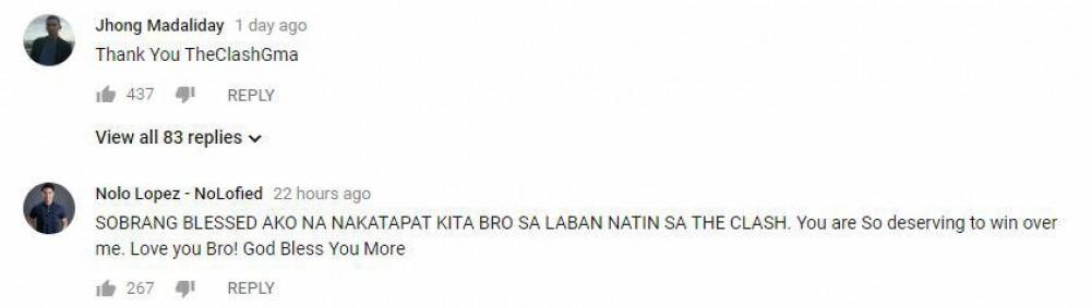 May mensahe rin naman ang dalawang Clashers sa isa't isa. Ika ni Nolo, "Sobrang blessed" siya na nakatapat niya si Jong. Sagot naman ni Jhong sa kanya, "Walang susuko, laban lang."