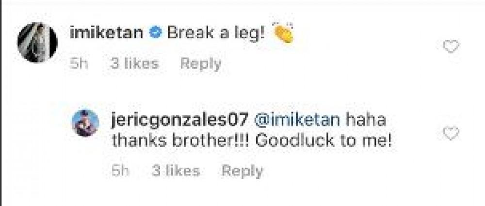 The StarStruck Ultimate Male Survivor Mike Tan even reacted to Jeric’s post via Instagram about taping for his new show.