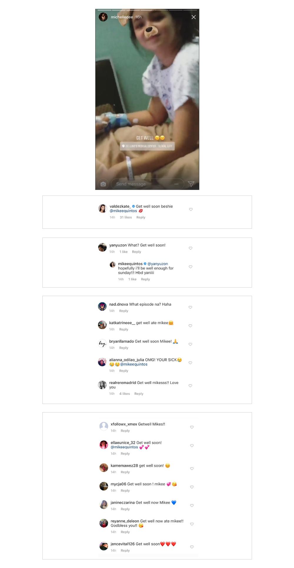 Bumuhos naman ang mga dasal at suporta ng mga celebrity friends ni Mikee tulad nila Michelle Dee at Kate Valdez na ang hiling ay ang madalian niyang paggaling.