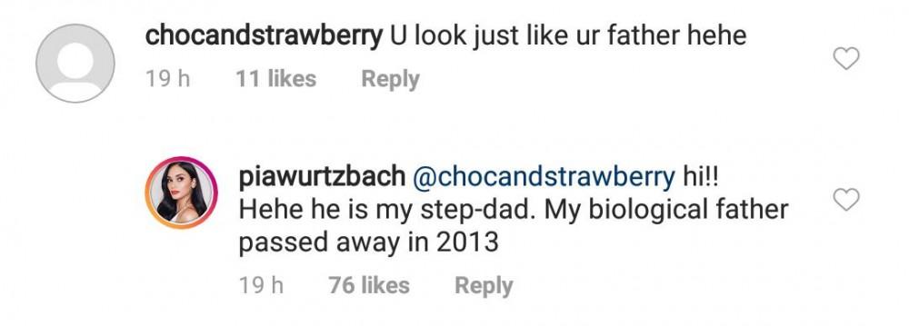 On the comment section, Pia clarified that she and her mom were with her step-dad in the photo.