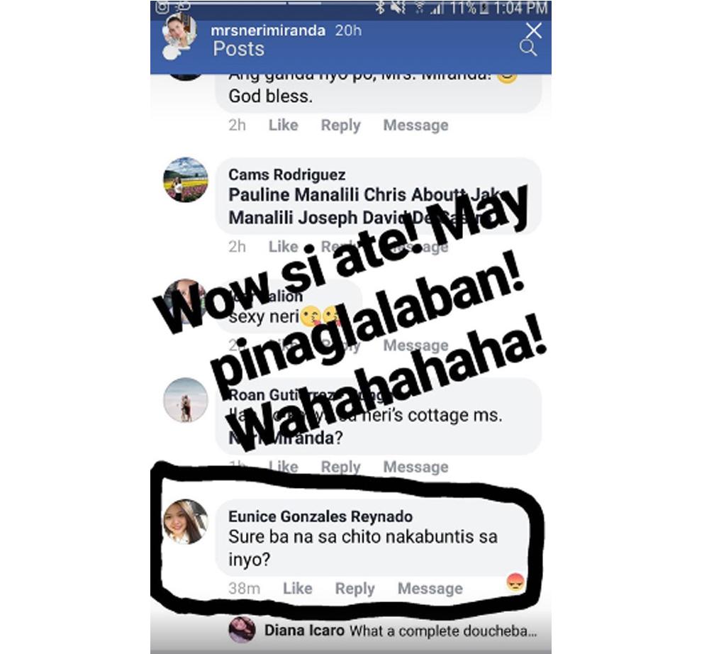 Makikita sa Instagram story ni Neri ang post ng basher na may malisyosong komento na hindi anak ng Parokya ni Edgar vocalist si Alfonso.