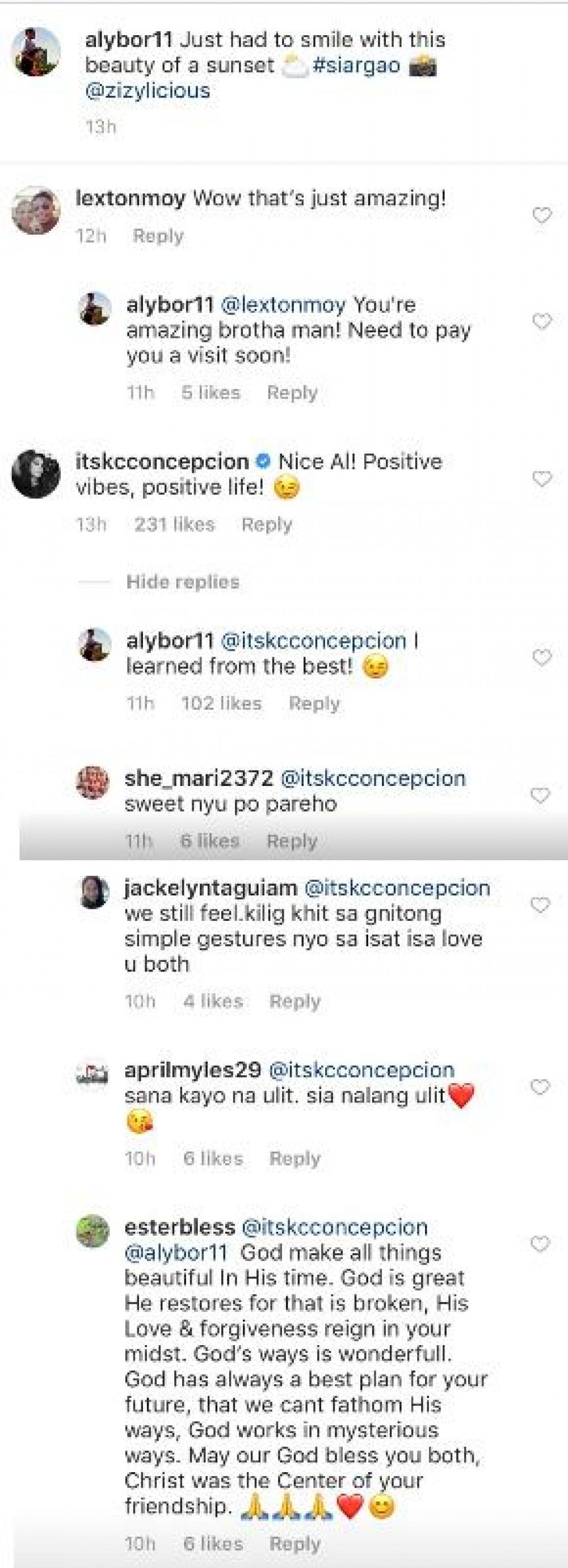 Netizens noticed their sweet exchange on Instagram, after KC commented on Aly’s photo when he visited the Naked Island in Siargao.