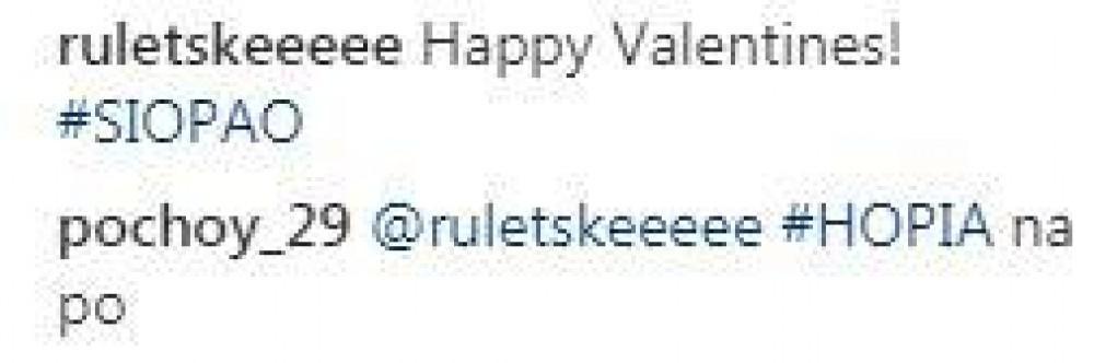 “Kahit na matutulog ako ngayong barado ang ilong sa kakahagulgol. @chiquitita03 Happy valentines day sa lahat!”