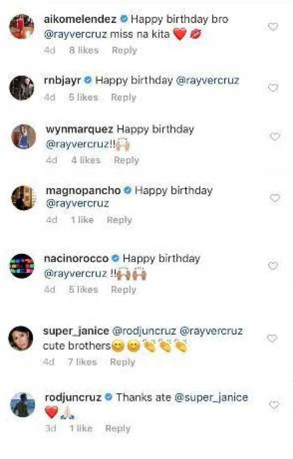 Nag-reply naman ng heart emojis si Rayver sa birthday greeting ng kaniyang kuya.