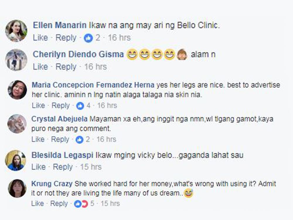 Ayon naman sa iba na hindi na dapat ikagulat ito, dahil pagmamay-ari ni Vicki ang isa sa pinakasikat na cosmetic clinic sa bansa.