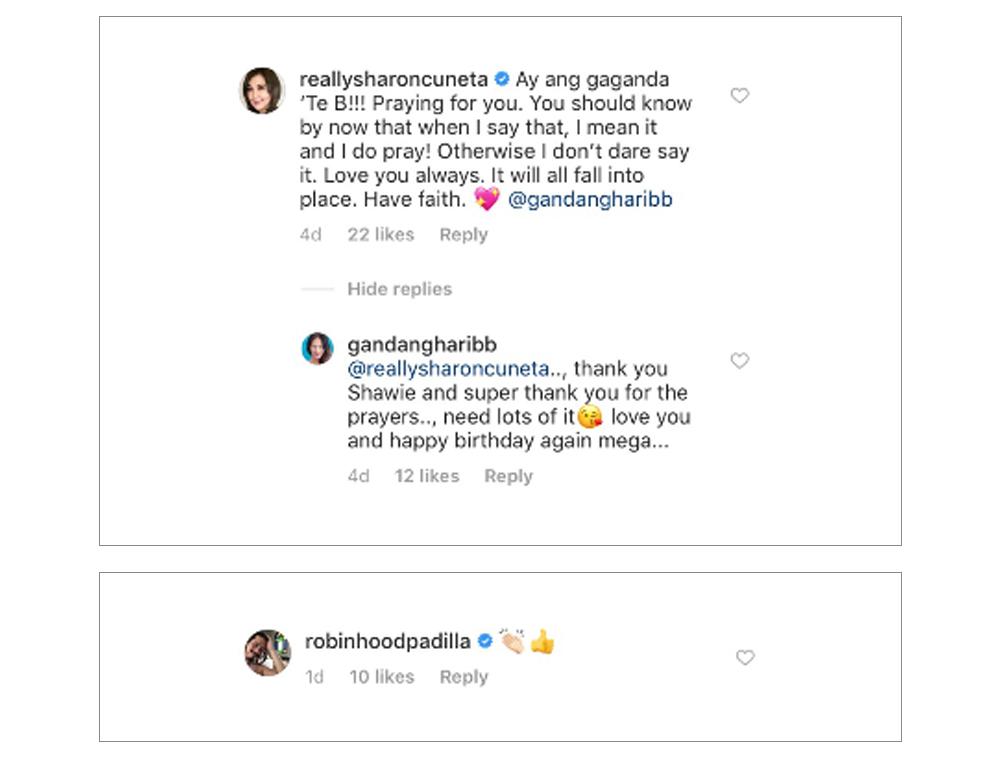 Nag-comment naman sa nasabing post ang Megastar na si Sharon Cuneta at ginawa naman itong chance ni BB na magpasalamat sa veteran actress/singer sa lahat ng suporta at prayers ng kaibigan para sa kaniya.