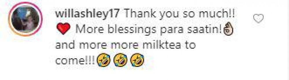 Will replied in the comment section saying, "More blessings para sa atin and more more milktea to come!!!"