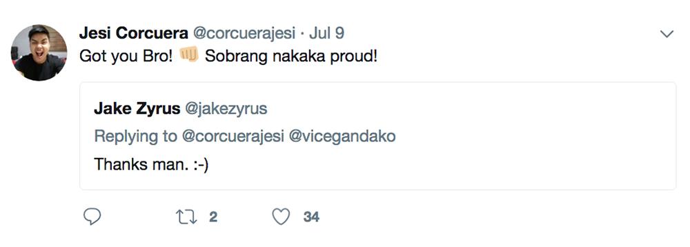 The proud transman on July 9 showed his love and support for Jake Zyrus.