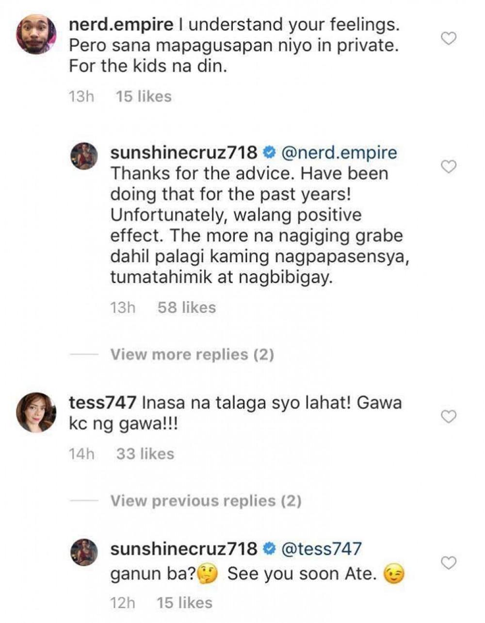 Ipinaliwanag din ni Sunshine kung bakit siya umalma sa social media para sa mga usaping pang-personal.