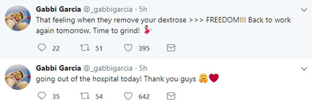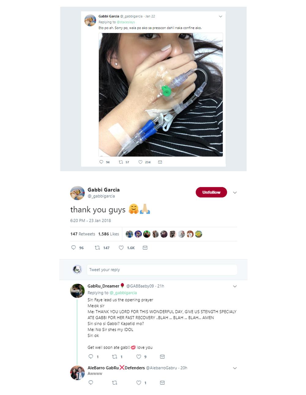 Gabbi revealed to her fans that she was confined in the hospital in her tweet.