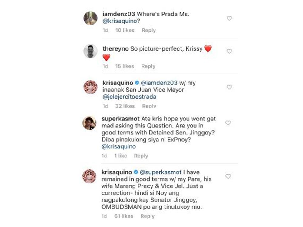 Kris replied and clarified that she is in good terms with the family of Senator Jinggoy.