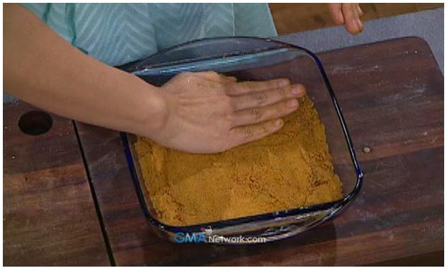 1. Mix crushed Graham crackers and melted butter. Mix well until incorporated.