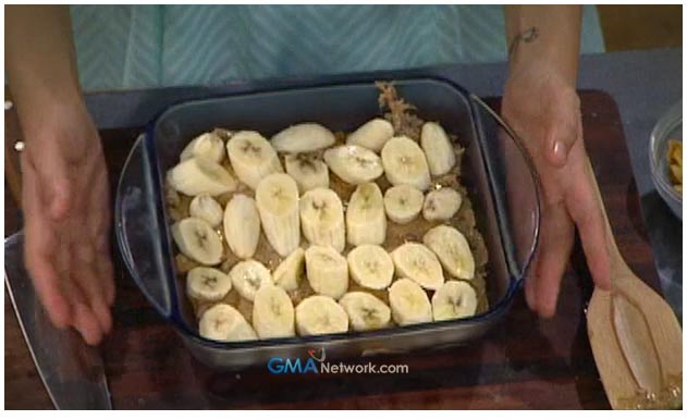 4. Spread the caramel over the pie, put sliced bananas on top.