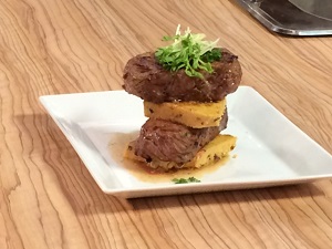 3. Cook beef in heated lightly-oiled large frying pan until browned all over and cooked as desired. Cover for 10 minutes, then slice thickly.