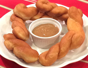 Divide the dough into 14 pieces. Start rolling dough into cigar and twist it.
