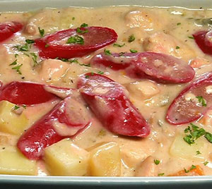 Heat oil in pan then sauté, carrots, onions, bell pepper, garlic and mushrooms until fragrant then add in CDO Idol Cheesedog. Cook for 3 minutes.
