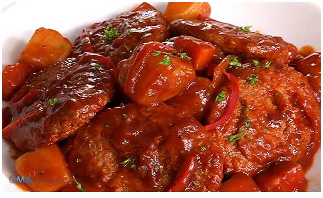 2. When vegetables have lightly caramelized, add white onions and bell peppers. Cook for 3 minutes then add CDO Ulam Burger, beef stock, tomato sauce, calamansi juice, soy sauce and bay leaf. Simmer until thickened.