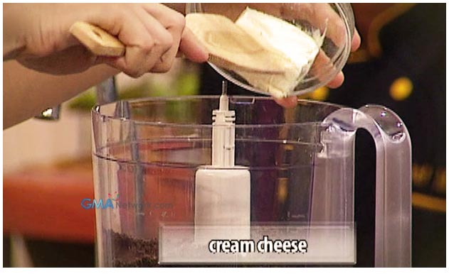 1. Using a blender, mix cookies, cream and cream cheese together.