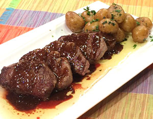 Sauté the boiled potaoes, season with salt and pepper, and add the chopped parsley. Served with the steak.