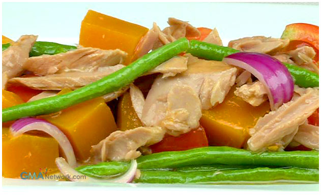 Add the kalabasa and sitaw. Simmer until half cooked.