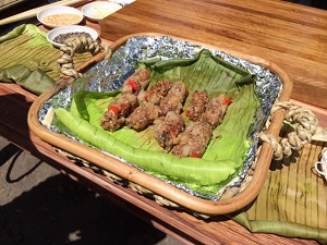 2. Cut the aluminum foil to 6 x 6-cm pieces, then spread softened butter. Put a portion of the longganisa mix and tighten nicely. Steamed for 10 minutes and take off the foil, then pan-grill until done.