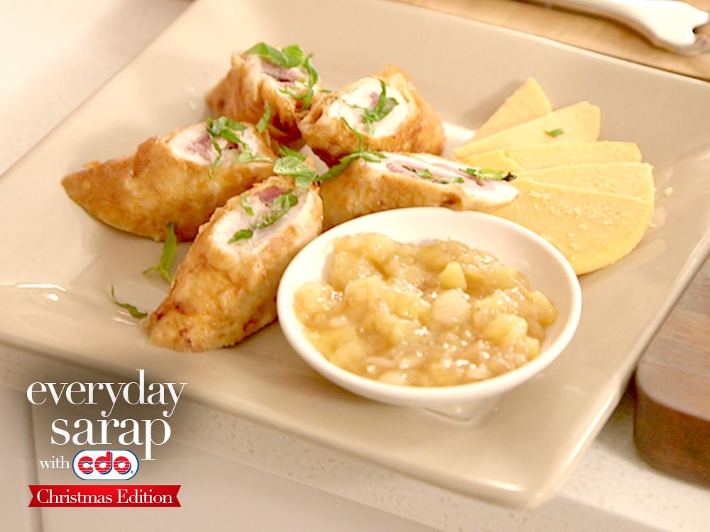 1. Roll up one slice of Holiday Whole-Meat Ham, top with bell pepper and basil and place it on the chicken breast.