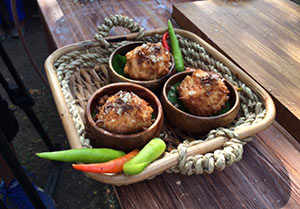 3. Deep fry until golden. Place in plate and drizzle with strawberry syrup. Garnish with mint leaves.