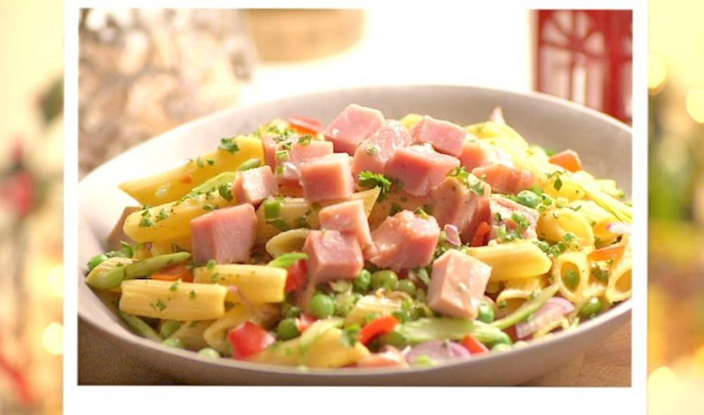 2. Add Holiday Whole-Meat Ham, bell pepper, peas, celery, shallots and parsley. Whisk vinegar, lemon juice and mustard in small bowl to blend; whisk in mayonnaise and all-purpose cream. Season dressing with salt and pepper. Toss salad with dressing.