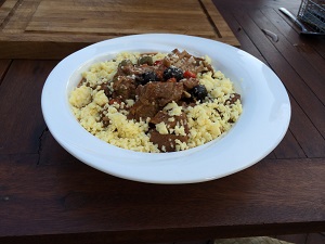 2. Add soft kambing meat, olives, and pimientos, then place in plate and top with grated cheese just before serving.