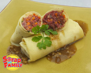 Spoon some vegetable and CDO Karne Norte mixture on top. Sprinkle some peanuts and sugar mixture.