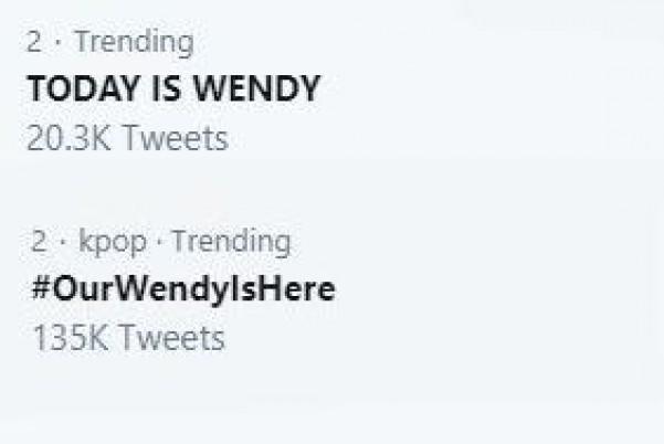 Wendy of Red Velvet becomes a trending topic on Twitter following her comeback after taking a hiatus due to a stage accident.