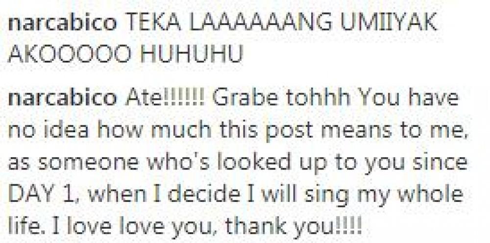 Masaya naman ang Kapuso singer sa mensahe ni Ate Reg at nag-comment din si Nar sa post.