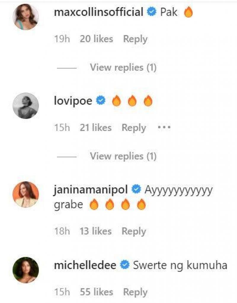 The post immediately drew fiery reactions from Rhian's Instagram followers and her celebrity friends. Max Collins, Lovi Poe, Janina Manipol, and Michelle Dee left either fire emojis or said that whoever took the picture must be lucky.